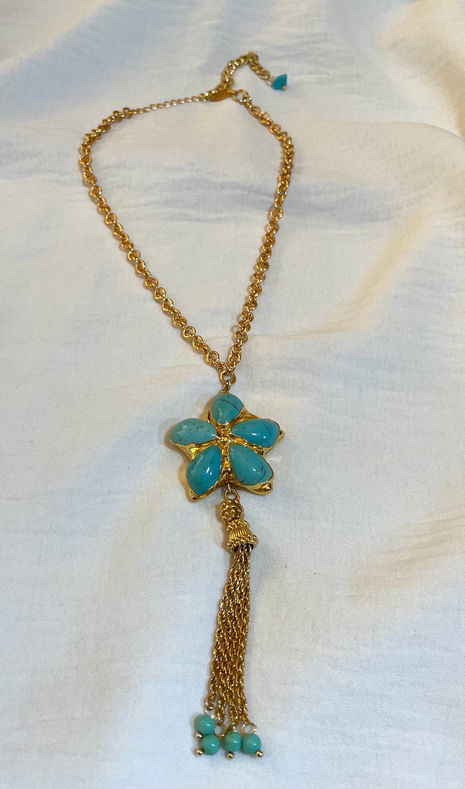 سلسله من الفيروز الطبيعي مطليه بالذهب