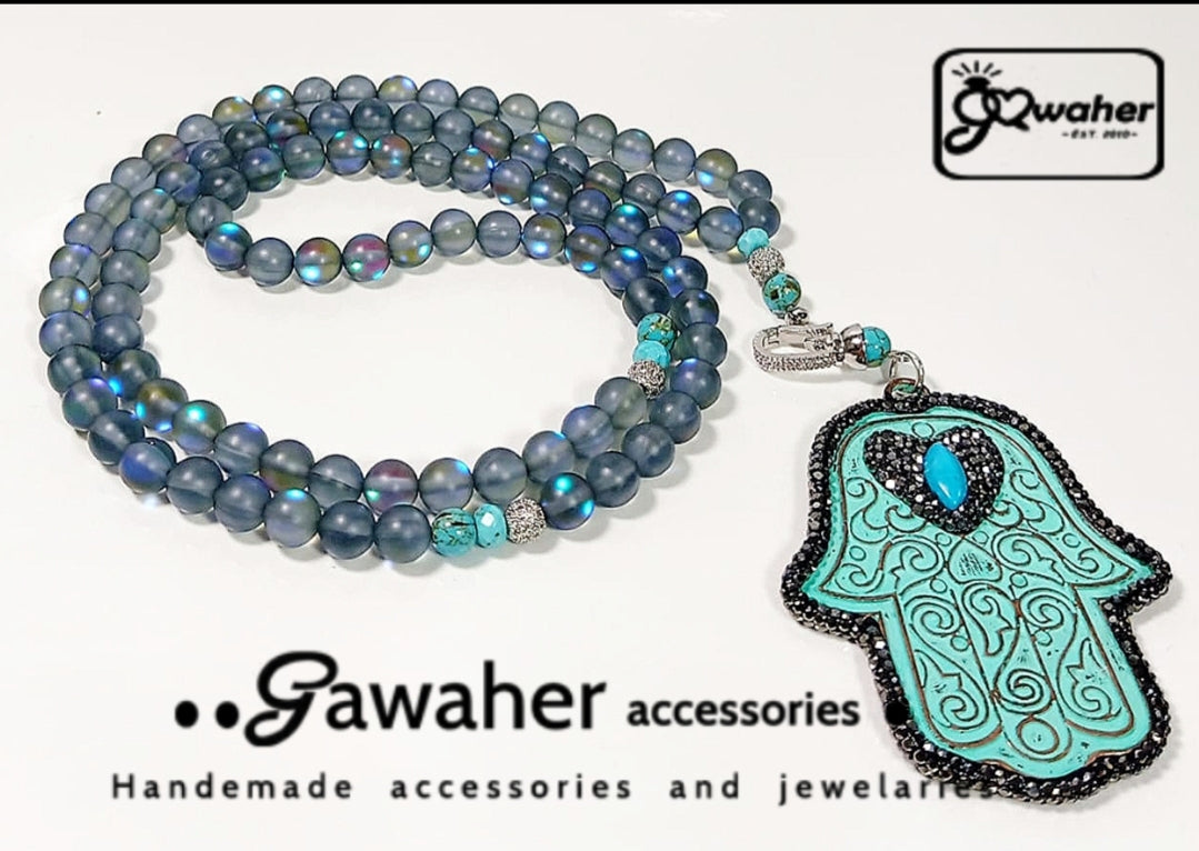 سبحه من حجر مون ستون طبيعي وميكروزركون